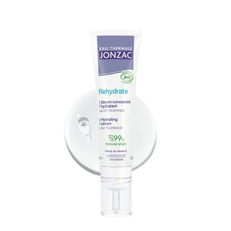 Fortement concentré en Eau thermale de Jonzac et en un actif naturel reprogrammateur d’hydratation, le Sérum concentré hydratant Rehydrate gorge la peau en eau et hydrate les couches supérieures de l’épiderme. Sa texture gel ultra-légère fond instantanément sur la peau et offre un shot de fraîcheur pour une hydratation intense et durable. Jour après jour, les ridules de déshydratation sont estompées. La peau est ressourcée, repulpée et retrouve son éclat. Testé sous contrôle dermatologique. Formulé avec : 50% d’eau thermale de Jonzac, duo d’acides hyaluroniques reconnues réparateur et hydratant1, complexe booster d’hydratation, reprogrammateur naturel d’hydratation1, L-PCA reconnu hydratant1. Non comédogène. Résultats : Complexe booster d’hydratation Toutes peaux, même sensibles 0% alcool, silicone, huile minérale 99% d’origine naturelle Actifs : EAU THERMALE DE JONZAC, ACTIF DU SÉRUM CONCENTRÉ HYDRATANT Différentes études confirment son action au niveau cutané : l’eau thermale de Jonzac est régénérante, apaisante et anti-inflammatoire. Jour après jour, les cellules se régénèrent, la qualité de la peau est transformée. L’eau thermale de Jonzac a été puisée directement dans son milieu originel à plus de 1850m de profondeur. Pure, douce et hyperminéralisée, l’eau thermale de Jonzac est isotonique et respecte donc l’intégrité des cellules de la peau. Retrouvez cet actif dans le Sérum concentré hydratant. ACIDE-HYALURONIQUE-NATUREL L’ACIDE HYALURONIQUE, ACTIF DU SÉRUM CONCENTRÉ HYDRATANT L’acide hyaluronique est un actif présent dans le sérum concentré hydratant. Il s’agit d’une molécule physiologique qui conserve l’hydratation(1) de l’épiderme en retenant l’eau dans la matrice cellulaire périphérique à la manière d’une « éponge ». Cet actif dans son état libre est aussi connu pour ses propriétés réparatrice, raffermissante et repulpante. (1) Hydratation cutanée (des couches extérieures de l’épiderme) LE L-PCA, ACTIF DU SÉRUM CONCENTRÉ HYDRATANT Le L-PCA est un actif d’hydratation présent dans le Natural Moisturizing Factor(NMF) ou facteur naturel d’hydratation(1) qui favorise l’équilibre d’hydratation des couches supérieure de l’épiderme. Le L-PCA est l’hydratant(1) physiologique de référence qui optimise la synthèse des lipides cutanés et renforce la barrière naturelle de la peau. Profitez du L-PCA dans le Sérum concentré hydratant. (1) Hydratation des couches supérieures de l’épiderme L’ACTIF NATUREL REPROGRAMMATEUR D’HYDRATATION, ACTIF DU SÉRUM CONCENTRÉ HYDRATANT Cet actif permet une optimisation des réserves hydriques et une limitation des pertes en eau. La desquamation est équilibrée, le microrelief est lissé. Hydratée et restructurée, la peau est plus résistante aux agressions. Retrouvez cet actif dans le Sérum concentré hydratant. Conseils d’utilisation : Appliquer le sérum concentré hydratant matin et/ou soir sur le visage et le cou parfaitement nettoyés, après l’eau de soin concentré fraîcheur et avant votre soin Rehydrate pour une efficacité renforcée.