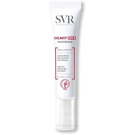 CICAVIT DM+ CICATRICES, dispositif médical. Gel de silicone anti-cicatrices, anti-marques, favorise la cicatrisation et réduit les cicatrices post-actes chirurgicaux ou dermatologiques. Apaise et soulage immédiatemment les démangeaisons et diminue rougeurs et tiraillements.Texture transparente, douce, non grasse et non collante pour un film protecteur et réparateur. Réservé à l’adulte. APPLIQUEZ Sur peau propre, nettoyée et sèche, 2 fois par jour sur les plaies refermées et les cicatrices. Ne pas utiliser plus de 30 jours. En cas d’exposition au soleil, protéger votre cicatrice afin de limiter les risques de marques rouges et brunes.